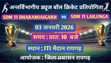 समस्त अधिकारी ,कर्मचारी एवं शिक्षक संवर्ग (शिक्षा विभाग) के क्रिकेट खिलाड़ियों के लिए विकासखंड तमनार में 4 जनवरी से 6…
