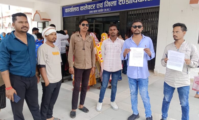हल्का पटवारी के फर्जी हस्ताक्षर करते हुए नकल बनाकर की गई रजिस्ट्री की निष्पक्ष जॉच कर उचित कार्यवाही करने की मांग को लेकर आदिवासी समाज युवाओ के द्वारा कलेक्टर को ज्ञापन सौंपा। समाज के युवा अध्यक्ष सुबोधकांत सूर्यवंशी, अनमोल मंडावी, राहुल कोसमा, टीकम तारम, नवीन मंडावी सहित समाज के अन्य युवको ने ज्ञापन देकर बताया की