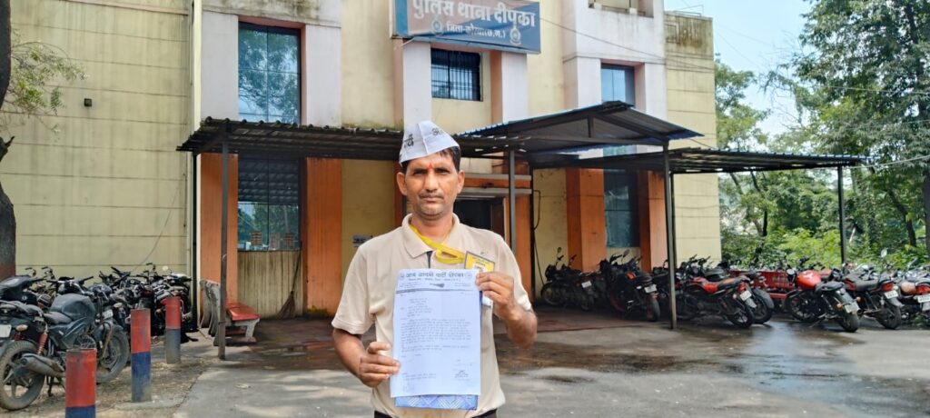 नेशनल आम आदमी पार्टी के कटघोरा विधानसभा के ब्लॉक अध्यक्ष धर्मदास गुप्ता (गांधी) ने दीपका थाना प्रभारी से दीपका नगर पालिका क्षेत्र में शांति व्यवस्था को कायम रखने के लिए थाना प्रभारी को आवेदन व निवेदन किया गया हैं और अनुरोध किया है कि समाज में उपस्थित असामाजिक तत्वों के व्यक्तियों के ऊपर कड़ी से कड़ी कार्यवाही व नियमित गस्त करके शांति व्यवस्था को कायम रखने के लिए आग्रह व निवेदन किया गया है ।