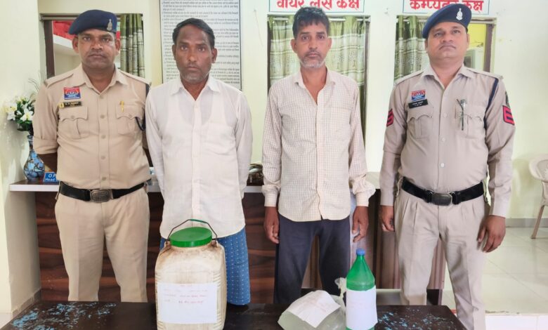 थाना हसौद पुलिस द्वारा थाना क्षेत्र में अवैध शराब के कारोबार पर लगाम कसते हुए विशेष अभियान चलाकर ग्राम देवरघटा में दबिश देकर दो आरोपियों से कुल 18 लीटर कच्ची महुआ शराब जब्त कर 02 आरोपी को गिरफ्तार किया गया