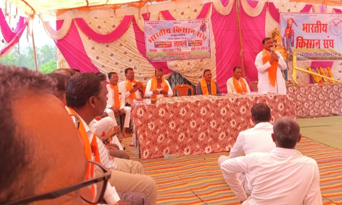 बैरसिया के नजीराबाद में किसानों के समस्या सुने पहुंचे भारतीय किसान संघ के अखिल भारतीय उपाध्यक्ष राम भरोसे बसोतिया एवं पूर्व प्रांतीय अध्यक्ष कैलाश सिंह ठाकुर बैरसिया के नजीराबाद मे प्रवास पर जिला एवं तहसील नजीराबाद में विशाल जनसभा का आयोजन नजीराबाद मंडी प्रांगण में किया गया जिसमें राम भरोसे बसौतिया ने किसानों को संघ के बारे भगवान बलराम के जिवनी पर प्रकाश डालते हुए किसानोँ समाज को संगठित होकर ग्राम इकाइयों को हर माह अपने ग्रामों में बैठक कर ग्राम के विकास की चर्चा करना चाहिए ग्राम इकाई जितनी सक्रिय होगी उस गांव का उतना ही विकास होगा जनसभा के बाद विशाल वाहन रैली निकालकर प्रधानमंत्री व मुख्यमंत्री एवं कलेक्टर के नाम नायब तहसीलदार को ज्ञापन दिया जिसमें मुख्य मांगे रही नजीराबाद को पूर्ण तहसील बनाई जाए सोयाबीन की समर्थन मूल्य पर खरीदी की जाए सहकारिता मे जो किसान वर्ड हो गए थे ब्याज माफ किया जाए नजीराबाद में एमपी एग्रो के अंतर्गत नगद खाद वितरण केंद्र खोला जाए भोपाल जिले को बीमा में जोड़ा जाए आदि विषयों को लेकर ज्ञापन दिया इस अवसर पर अखिल भारतीय उपाध्यक्ष रामभरोस बसोदिया प्रांत कार्यकारिणी सदस्य कैलाश सिंह ठाकुर, जिला अध्यक्ष गिरवर सिंह राजपूत, जिला उपाध्यक्ष कैलाश गौर ,जिला मंत्री देवेंद्र सिंह दांगी, तहसील अध्यक्ष लोकेंद्र सिंह सोलंकी, जिला सदस्य ओमकार सिंह सोलंकी, राजन सिंह सोलंकी, रवि मीणा, ज्ञान सिंह मीणा ,तहसील मंत्री श्यामलाल कुशवाह, जिला सदस्य धीरज सिंह दांगी बैरसिया तहसील अध्यक्ष शैतान सिंह राजपूत बैरसिया तहसील उपाध्यक्ष मांगीलाल नागर से मंत्री हेम सिंह दांगी सह मंत्री राजेंद्र सिंह सोलंकी मुकेश मीणा प्रकाश मीणा दिनेश लोधी राजाराम मेहर लखन गुर्जर हुकम सिंह गुर्जर एवं तहसील कार्यकारिणी