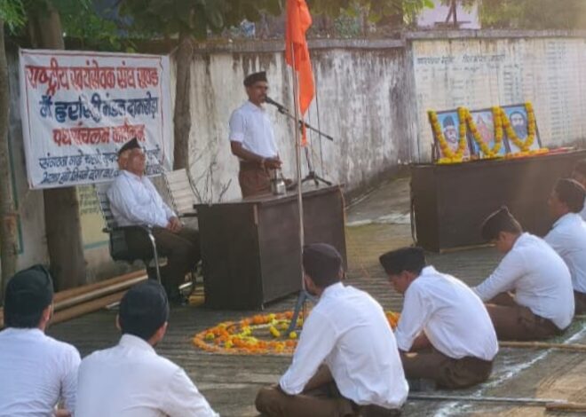 बैरसिया ।। राष्ट्रीय स्वयंसेवक संघ के शताब्दी वर्ष पूर्ण होने पर जिलेभर में कार्यक्रम आयोजन किया जा रहा है इसी क्रम में मां हरसिद्धि खंड मंडल दामखेड़ा में पथ संचलन निकाला गया। चल समारोह पंचायत भवन प्रांगण, से शुरू होकर कुशवाह मोहल्ला होते हुए बाजार मोहल्ला से पटेल पूरा होते हुए पंचायत भवन प्रांगण दामखेड़ा कार्यक्रम स्थल पहुंचा। मुख्य वक्ता समंदर सिंह सिसोदिया मां हरसिद्धि खंड कार्यवाह ने विजयादशमी उत्सव संघ शताब्दी वर्ष और पंच परिवर्तन से व्यक्तिगत परिवर्तन पारिवारिक परिवर्तन और ग्राम परिवर्तन समाज परिवर्तन एवं राष्ट्र परिवर्तन का विषय रखा और कहा कि संघ का स्वयंसेवक हमेशा तैयार रहता है व्यक्ति अगर आचरण परिवार एवं गांव में सकारात्मक बदलाव का कार्य करता है तो समाज और राष्ट्र स्वतः सशक्त बनेंगे और भारत परम वैभवशाली और विश्व गुरु की भूमिका में अग्रणी बनेगा।
