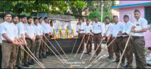 कमद से कमद ताल से ताल मिलाकर स्वयंसेवक एक साथ निकाला पथ संचलन