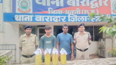 नवीन जिला सक्ति थाना जैजैपुर पुलिस की कार्यवाही श्रीमान पुलिस अधीक्षक महोदय सक्ती सुश्री अंकिता शर्मा (भापुसे) श्रीमान अतिरिक्त पुलिस अधीक्षक महोदय श्री हरीश कुमार यादव (रापुसे) द्वारा अवैध शराब परिवहन, संग्रहण एवं बिक्री करने वालो के खिलाफ सख्त से सख्त कार्यवाही किये जाने दिए गए निर्देश के परिपालन में थाना जैजैपुर पुलिस द्वारा आज दिनांक 11.10.2025 को मुखबीर सूचना पर ग्राम तुषार के नवा तालाब के पास नहर पुल के नीचे मे शराब रेड कार्यवाही किया गया जो साहेब लाल सतनामी पिता बल्दु सतनामी उम्र 55 साल साकिन बोडसरा थाना जैजैपुर जिला सक्ती (छ0ग0), को ग्राम तुषार के नवा तालाब के पास नहर पुल के नीचे मे अवैध रूप से शराब परिवहन करने शराब रखे पाये जाने पर आरोपी के कब्जे से दो सफेद रंग के 15-15 लीटर क्षमता वाली दो जरिकेन मे भरी लगभग 30 लीटर कच्ची महुआ शराब एवं एक सफेद रंग के 10 लीटर क्षमता वाली जरिकेन मे भरी लगभग 8 लीटर कच्ची महुआ शराब जुमला 38 लीटर किमती 3800/रू को समक्ष गवाहनविधिवत जप्त कर कब्जा पुलिस लिया गया उक्त आरोपी का कृत्य अपराध धारा 34 (2)आबकारी एक्ट का घटित करना पाये जाने से उक्त आरोपी को विधिवत गिरफ्तार कर न्यायिक रिमांड पर न्यालालय में पेश किया गया माननीय से आरोपी का जेल वारंट बनने से उक्त आरोपी को जेल दाखिल किया गया उक्त कार्यवाही मे थाना प्रभारी उप निरीक्षक जी एस राजपूत, प्र. आर. 10 अनुप खलखो, आर. 295 गोविन्द पटेल, आर. 210 कामता मार्चे, आर. 219 संजय सोनवानी का विशेष योगदान रहा।