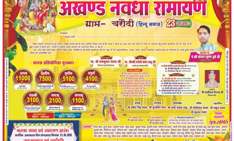 23 वा वर्ष चरौदी में अखंड नवधा रामायण 21 अक्तूबर से प्रारंभ