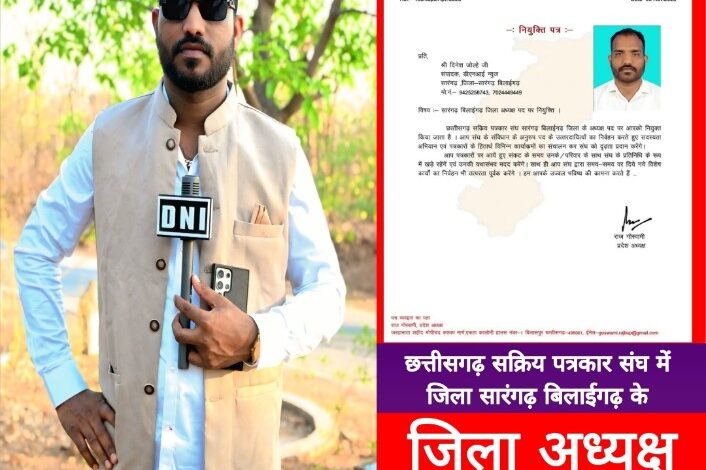 पत्रकार दिनेश जोल्हे बना ‘छत्तीसगढ़ सक्रिय पत्रकार संघ’ सारंगढ़ का जिलाध्यक्ष।