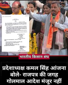 भारतीय किघसान संघ के प्रदेश अध्यक्ष कमल सिंह आंजना का वक्तव्य*मध्यप्रदेश सरकार का गोलमोल आदेश स्वीकार नहीं- भारतीय किसान संघ