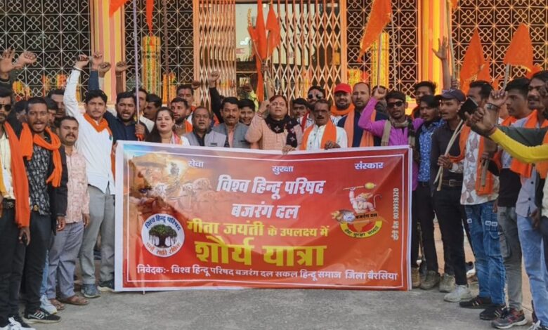 बैरसिया में विश्व हिंदू परिषद–बजरंग दल की शौर्य यात्रा का भव्य आयोजन