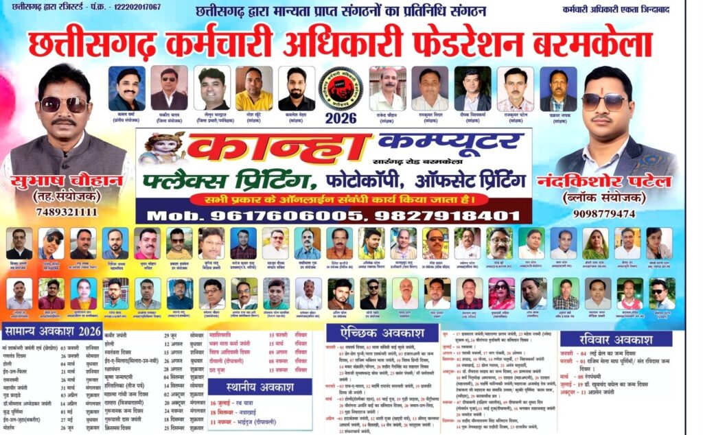 कर्मचारी अधिकारी फेडरेशन तहसील बरमकेला द्वारा नववर्ष के पावन अवसर पर एक भव्य, गरिमामय एवं उत्साहपूर्ण नववर्ष मिलन समारोह का आयोजन किया गया। यह आयोजन कर्मचारी अधिकारी फेडरेशन के कर्मठ, जुझारू एवं संघर्षशील तहसील संयोजक श्री सुभाष चौहान जी तथा ऊर्जावान, कर्मठ और समर्पित युवा नेतृत्व के रूप में पहचान बना चुके ब्लॉक संयोजक श्री नंदकिशोर पटेल जी के कुशल मार्गदर्शन एवं नेतृत्व में सफलतापूर्वक संपन्न हुआ।