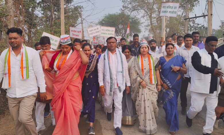 कांग्रेस का पदयात्रा बरमकेला में दीपक बैज ने मोदी सरकार के खिलाफ भरी हुंकार