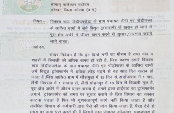 कोरबा/पोड़ी उपरोड़ा: इन दिनों गर्मी का मौसम है तथा गांव व शहरों में बिजली की अधिक खपत हो रही है, जिस कारण हमारे विकासखंड पोड़ी उपरोड़ा के ग्राम पंचायत लैंगी एवं पोड़ी कला के आश्रित ग्रामों में लगे विद्युत ट्रांसफार्मर अधिक लोड पढ़ने से वह आए दिन खराब हो जाता है जिसे आश्रित ग्राम में धौरामुंडा में 15 दिन से पंडरा पखना में एक माह लैंगी पिपरहा में एक सप्ताह से लैंगी मोहनपुर में 10 दिन से बिजली गुल है, पूरा क्षेत्र अंधेरे में जीवन यापन करने को मजबूर हैं, हमारे यहां हाई वोल्ट का ट्रांसफार्मर लगाने व ट्रांसफार्मर को समय पर सुधार करने के लिए विभाग का चक्कर काटना पड़ता है, फिर भी गुणवत्तापूर्ण कार्य नहीं किया जाता और संबंधित विभाग के कर्मचारी द्वारा पैसे की मांग किया जाता है और पैसा देने से समय पर काम पूरा करते भी हैं,जिसमें ग्राम पंचायत कोडगार पहाड़पारा में पैसा लेकर एक सप्ताह में नया ट्रांसफार्मर लगाने का काम किए हैं, देखते हैं क्या शिकायत होने पर विद्युत विभाग की रवैया पर अंकुश लगता है कि नई।